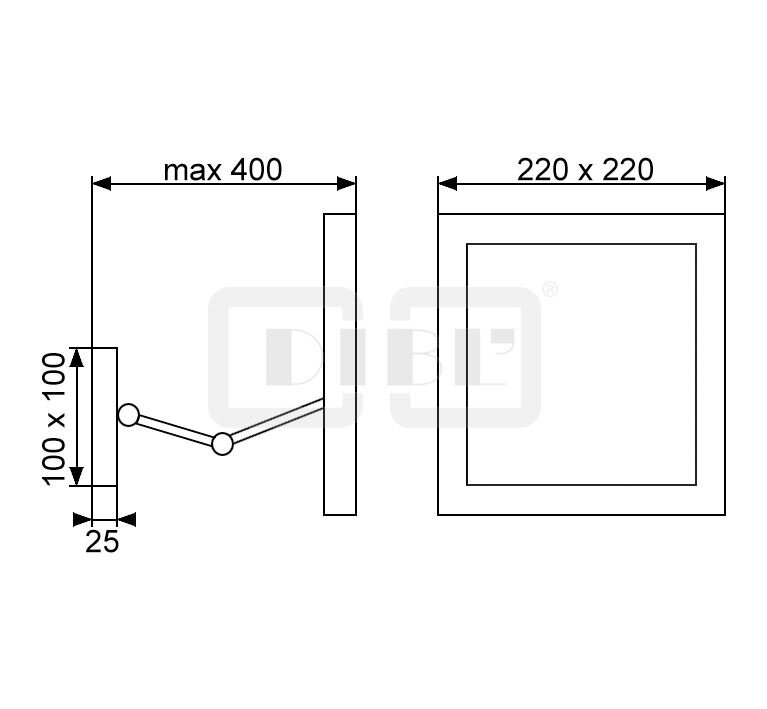 DIBL'accessoires Eckiger Rasierspiegel bzw. Kosmetikspiegel zur Wandmontage, mit 3-facher Vergrößerung, mit Doppelgelenkarm, mit LED-Beleuchtung