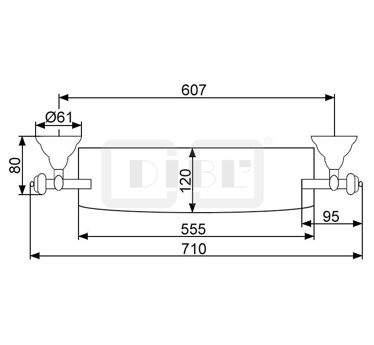 DIBL'accessoires Retro-Waschtisch-Wand-Kristallglas-Ablage 600 mm, mit Messing-Wandkonsolen