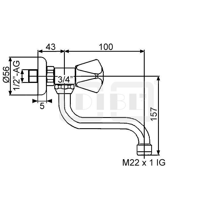 DIBL'classic Kaltwasser-Wandauslaufventil, mit seitlich schwenkbarem Rohrauslauf - Ausladung 100 mm