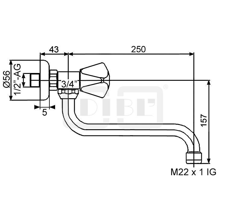 DIBL'classic Kaltwasser-Wandauslaufventil, mit seitlich schwenkbarem Rohrauslauf - Ausladung 250 mm