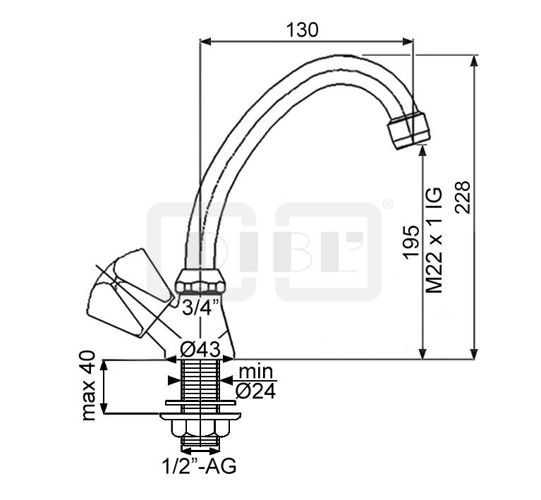 DIBL'classic Waschtisch-Kaltwasser-Standventil mit schwenkbarem Rohrauslauf, ohne Zugstangenbohrung, ohne Ablaufzubehör