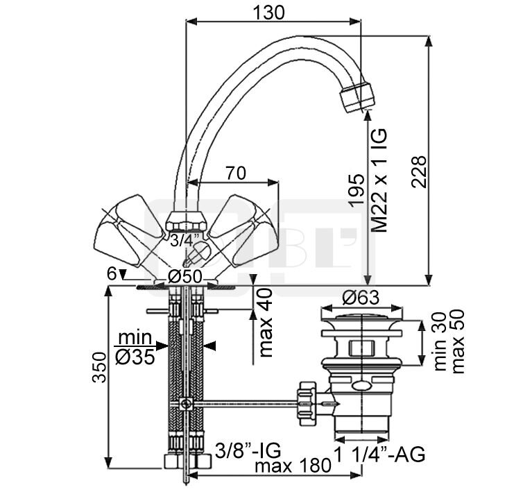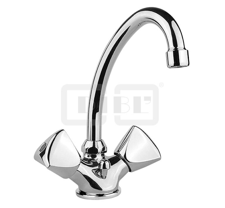 DIBL'classic Zweigriff-Waschtischbatterie mit hohem, schwenkbarem Rohrauslauf, mit Zugstangenbohrung und Ablaufgarnitur 1¼"