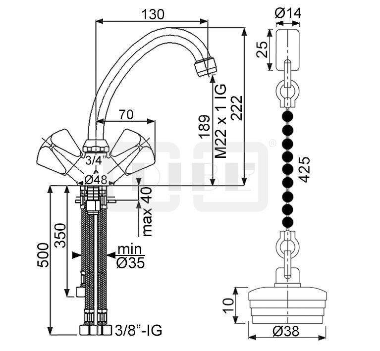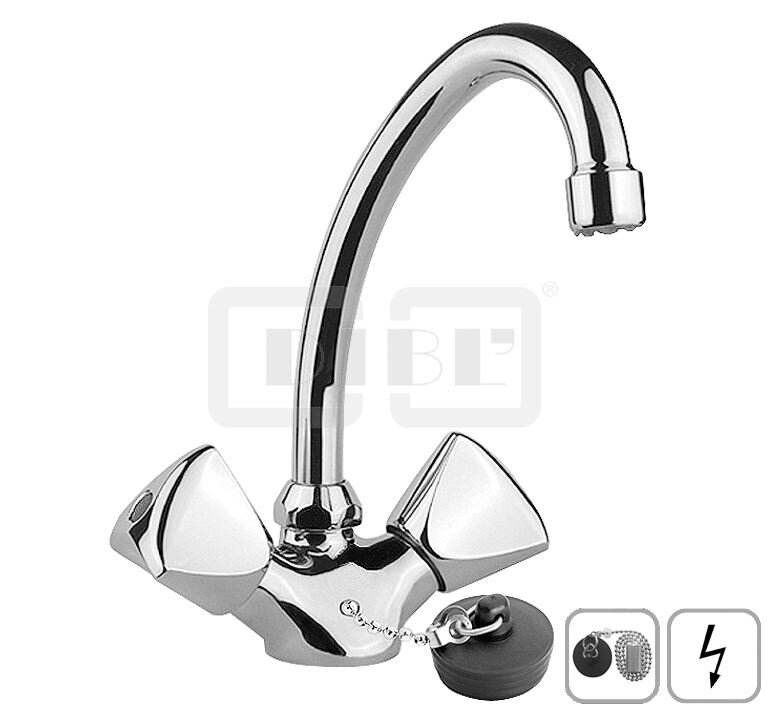 DIBL'classic Zweigriff-Waschtischbatterie mit hohem, schwenkbarem Rohrauslauf, mit Zugstangenbohrung, versenkbarer Kugelkette, Niederdruckausführung für drucklose Elektro-Untertischspeicher