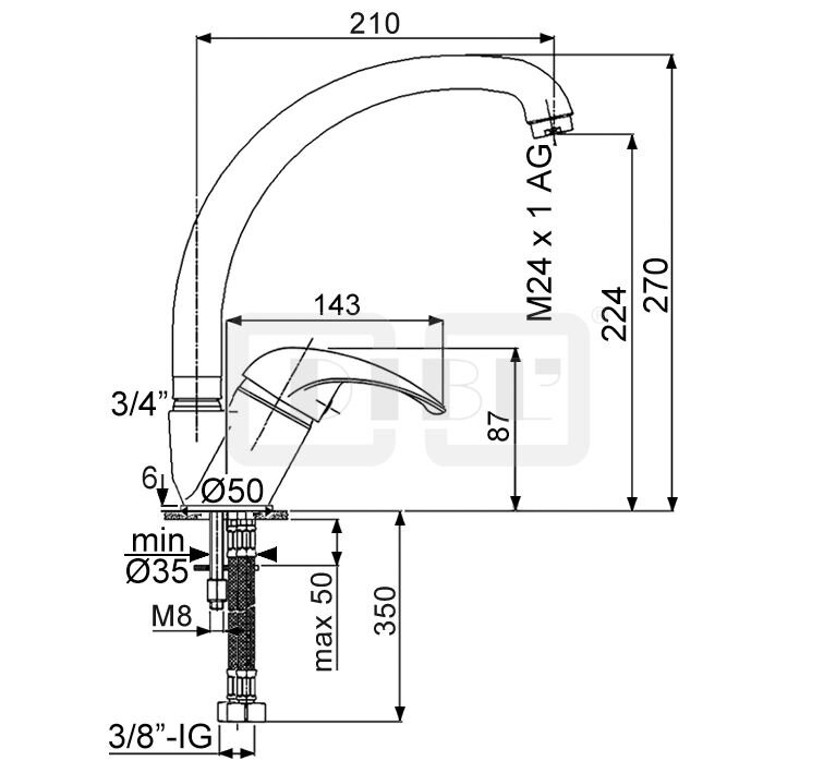 DIBL'design Einhebel-Spültischbatterie mit hohem, schwenkbarem Profilauslauf