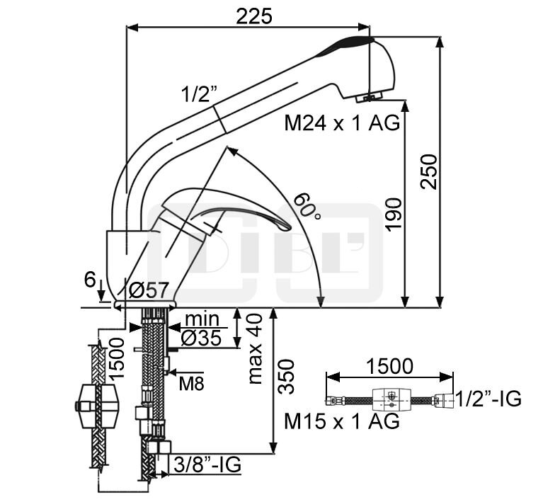 DIBL'design Einhebel-Spültischbatterie mit hohem, schwenkbarem Profilauslauf, mit Kunststoff-Antikalk-Auszug-Spülbrause mit Strahlregler und Brausestrahl