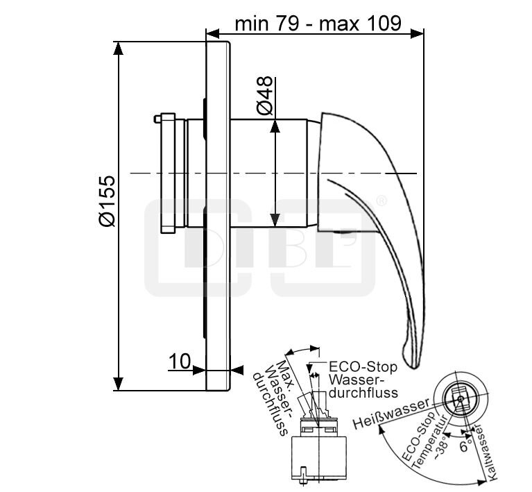 DIBL'design Einhebel-UP-Fertigmontageset zur Universal-Einbaukörper-Einheit, ohne Umstellung für einen Abgangsanschluss, mit ECO-Stop-Funktion, ohne Brausezubehör