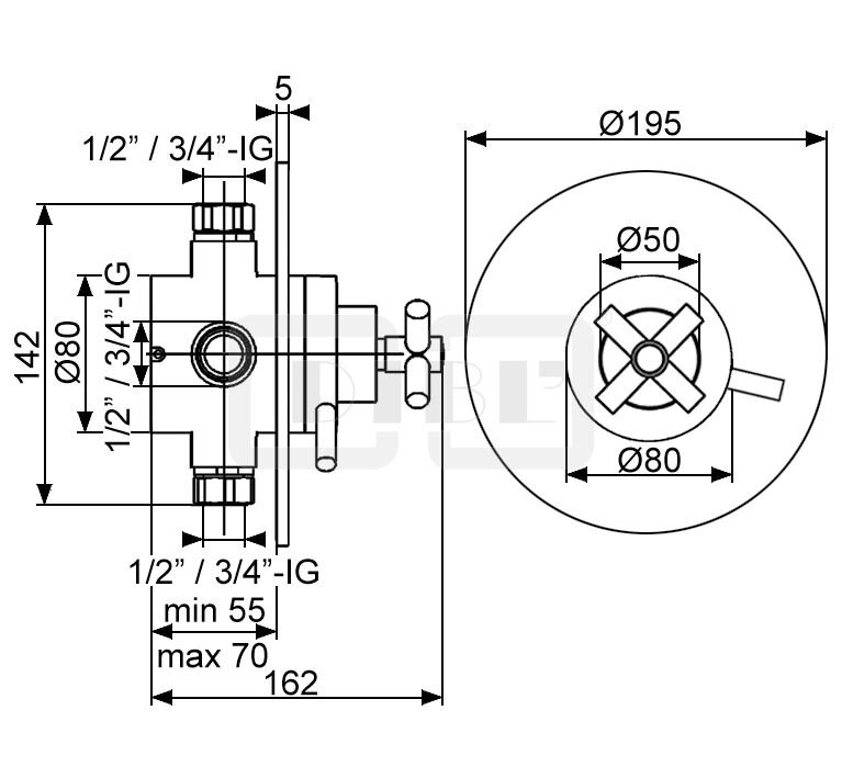 DIBL'extra Thermostat-Brausebatterie ½" zur Unterputzmontage, mit koaxialer Mengen- und Temperaturregulierung für einen Abgangsanschluss