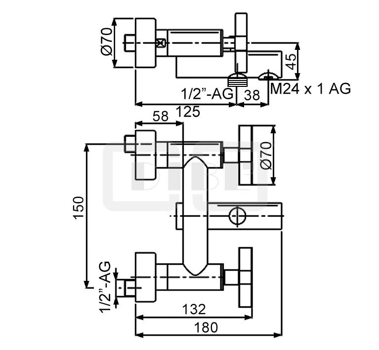 DIBL'extra Zweigriff-Wannenbatterie zur Aufputzmontage, ohne Brausezubehör