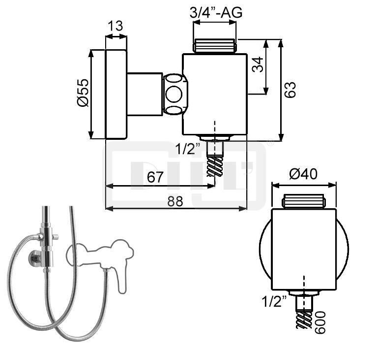 DIBL'fit Adapter zur Verbindung und Fixierung einer Brauseaufsatz-Kombination mit einer vorhandenen Aufputz-Brausebatterie mit Brauseabgang unten mit ½" AG