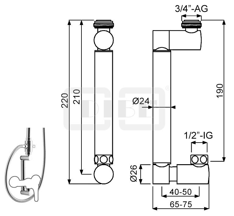 DIBL'fit Adapter zur Verbindung und Fixierung einer Brauseaufsatz-Kombination mit einer vorhandenen Aufputz-Brausebatterie mit Brauseabgang unten mit ½" AG