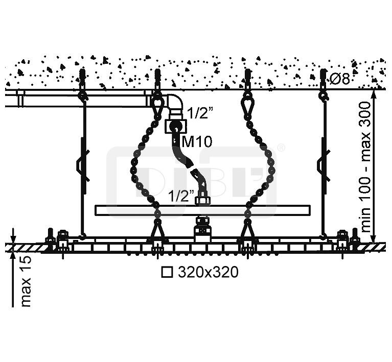 DIBL'fit Eckige Edelstahl-Deckeneinbau-Regenkopfbrause 320 mm x 320 mm x 2 mm