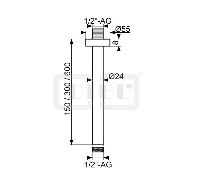 DIBL'fit Massiver Messing-Deckenanschlussarm, Länge 300 mm