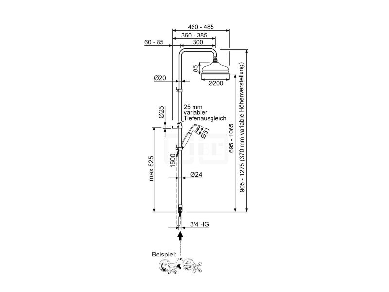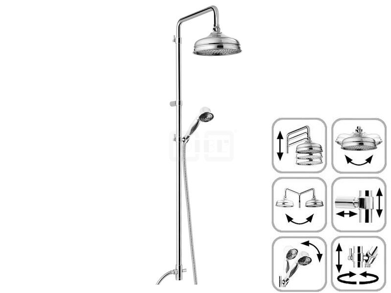 DIBL'fit Runde Brauseaufsatz-Kombination zum direkten Armaturenanschluss, mit Nostalgie-Messing-Handbrause, Metallbrauseschlauch 1500 mm