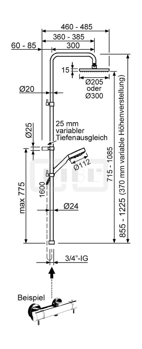 DIBL'fit Runde Brauseaufsatz-Kombination zum direkten Armaturenanschluss, mit runder Messing-Antikalk-Regenkopfbrause Ø 300 mm x 15 mm