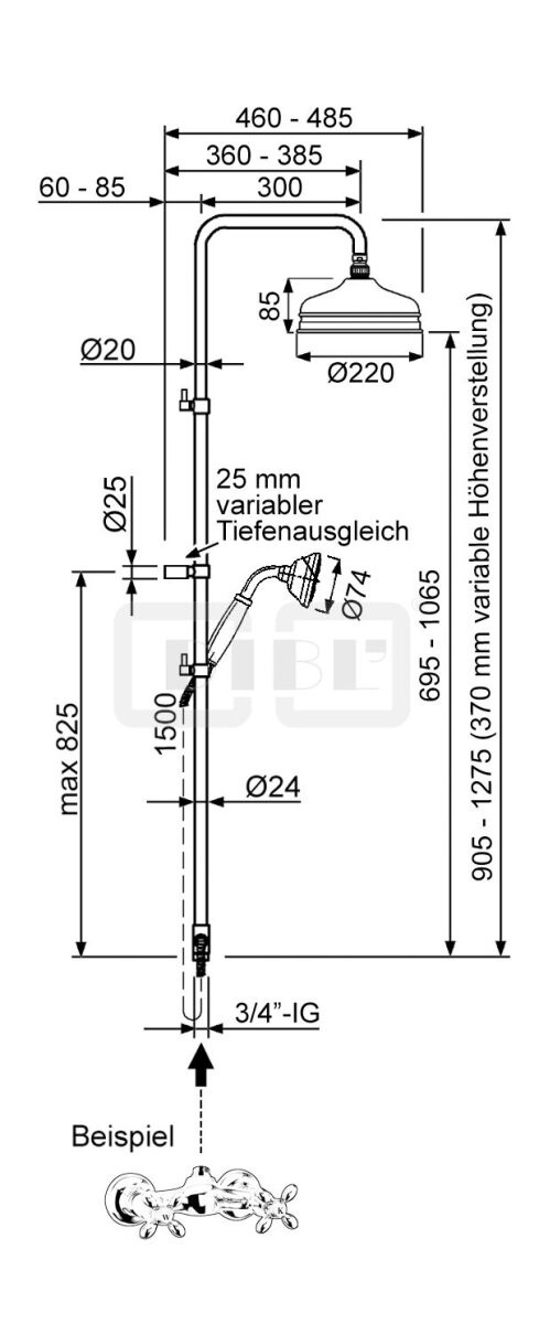 DIBL'fit Runde Brauseaufsatz-Kombination zum direkten Armaturenanschluss, mit runder Nostalgie-Messing-Regenkopfbrause Ø 220 mm x 85 mm