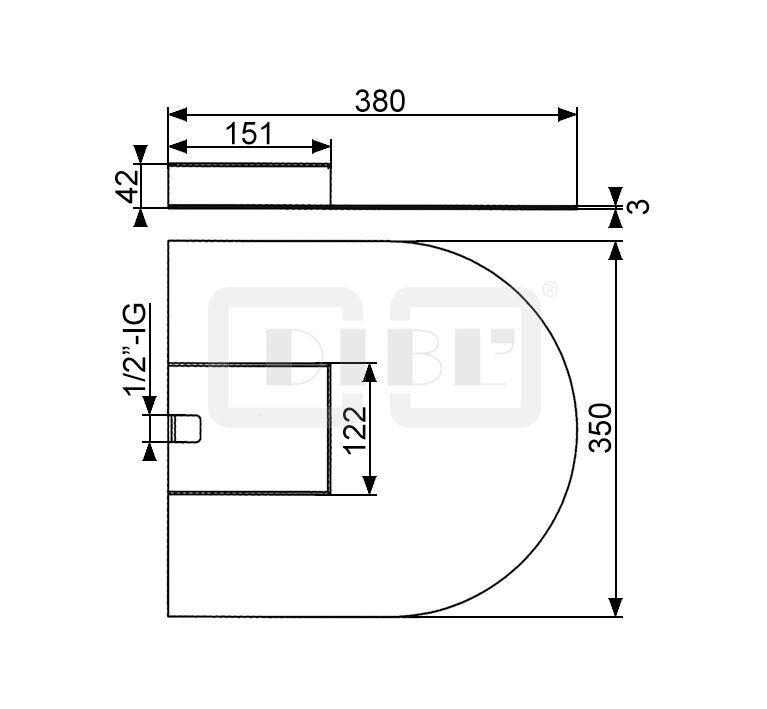 DIBL'fit Runde Edelstahl-Kopfbrause 350 mm x 380 mm x 3 mm zur Wandmontage, mit Cascaden-Schwallstrahl