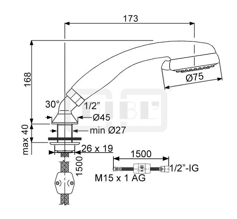 DIBL'fit Schlauchbrauseset zur Wannenrand- und Fliesenbankmontage, mit Kunststoff-Dreistrahl-Antikalk-Handbrause