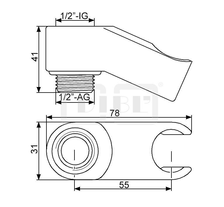 DIBL'fit Schwenkbarer Kunststoff-Spezial-Brausehalter zur Montage direkt am Brauseanschluss zur Vermeidung von Bohrlöchern im Wandbereich
