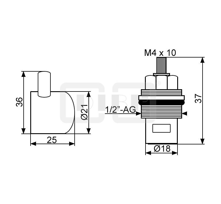 DIBL'fix Ersatz-Spültisch-Geräteabsperrventil mit Keramik-Oberteil ½", mit Messingguss-Betätigungsgriff