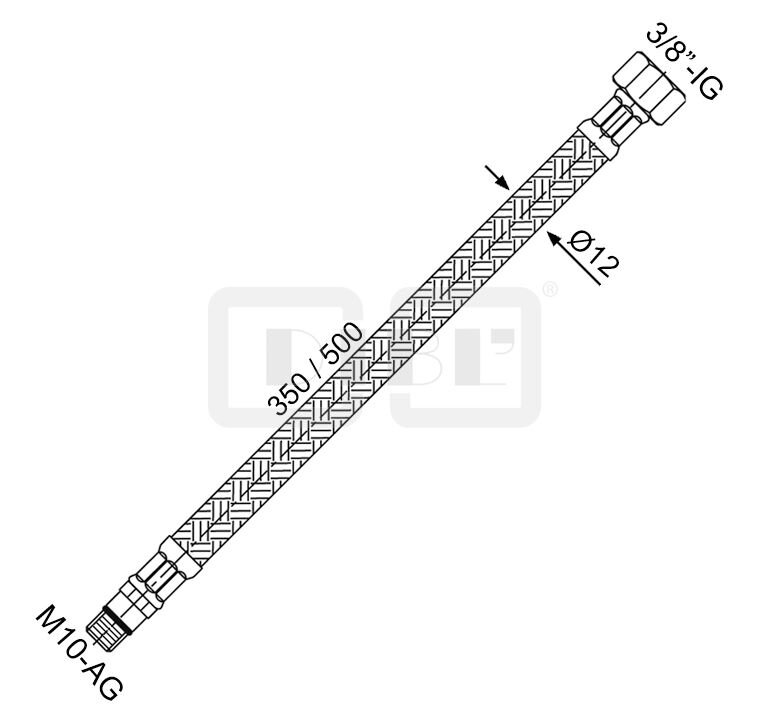 DIBL'fix Flexibler Edelstahl-Anschlussschlauch, M 10 x 1 Außengewinde x ⅜" Überwurf-Innengewinde, 500 mm