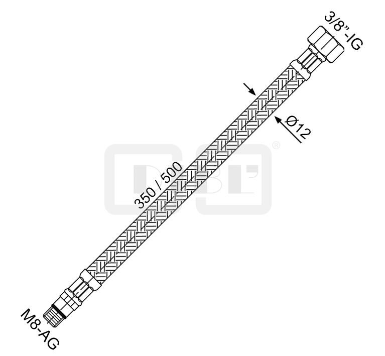 DIBL'fix Flexibler Edelstahl-Anschlussschlauch, M 8 x 1 Außengewinde x ⅜" Überwurf-Innengewinde, 500 mm
