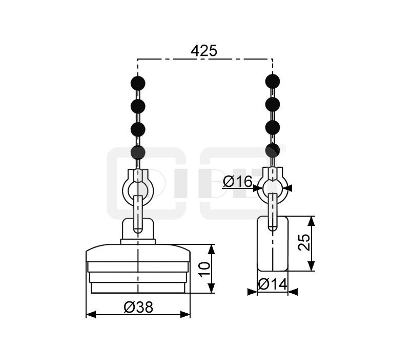 DIBL'fix Gummi-Waschtisch-Verschlussstopfen Ø 38 mm, mit Messing-Kugelkette 425 mm und Metall-Gegengewicht
