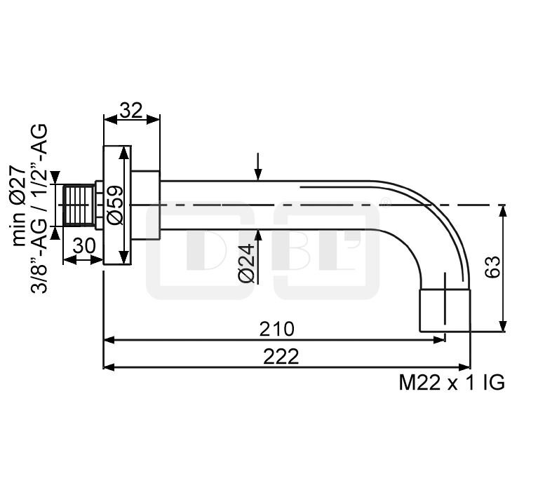 DIBL'fix Runder Messing-Wandauslauf 3/8" - Ausladung 210 mm