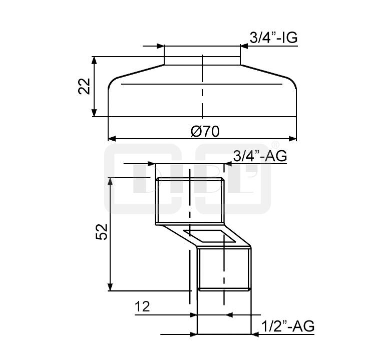 DIBL'fix S-Anschluss ½" Außengewinde x ¾" Außengewinde, mit Schalldämpfer, mit runder Messing-Nostalgie-Schraubrosette Ø 70 mm x 22 mm
