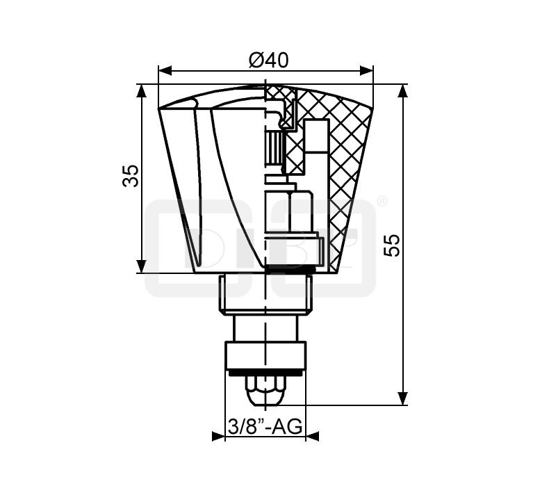 DIBL'fix Spezial-Ventil-Oberteil mit Metall-Hauben-Griff zu Spülthekenbatterien, blau, Größe ⅜"