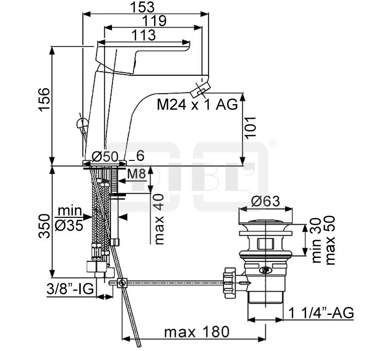 DIBL'geo "Edition 2" Einhebel-Waschtischbatterie XL-Version, mit Zugstangenbohrung und Ablaufgarnitur 1¼"