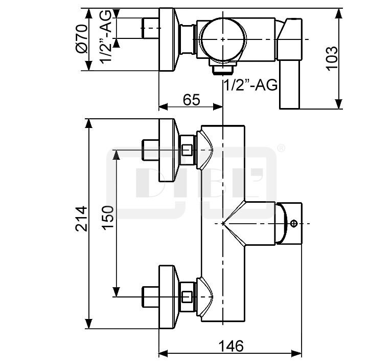 DIBL'ico Einhebel-Brausebatterie zur Aufputzmontage, ohne Brausezubehör, Brauseabgang unten ½" Außengewinde