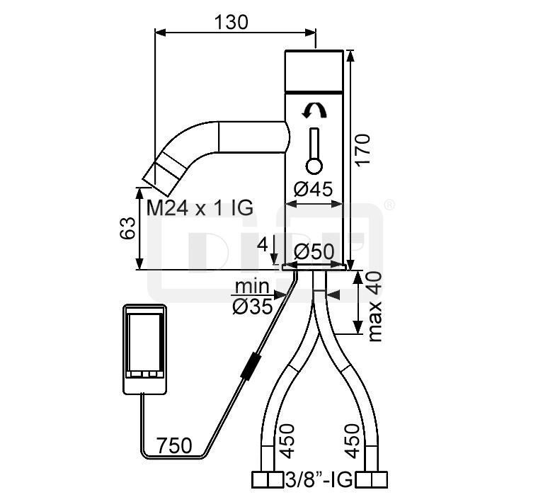 DIBL'med Infrarot-Elektronik Waschtischbatterie, mit manueller Temperatureinstellung für Kalt- und Warmwasseranschluss, mit automatischer 24-Stunden Hygiene-Spülung zur thermischen Desinfektion