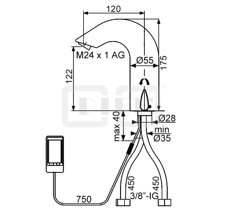 DIBL'med Infrarot-Elektronik Waschtischbatterie, mit manueller Temperatureinstellung für Kalt- und Warmwasseranschluss, mit automatischer 24-Stunden Hygiene-Spülung zur thermischen Desinfektion