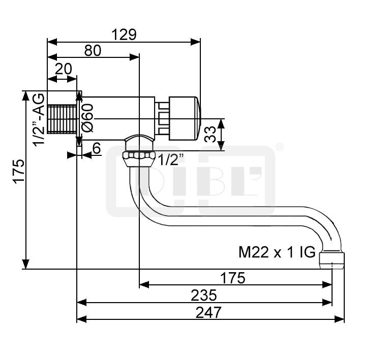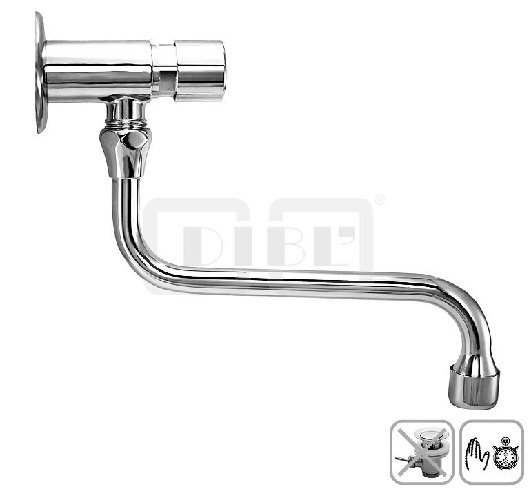 DIBL'med Selbstschluss-Wandventil mit seitlich, schwenkbarem Rohrauslauf, für Kaltwasser oder für bereits vorgemischtes Wasser, mit variabler Laufzeiteinstellung