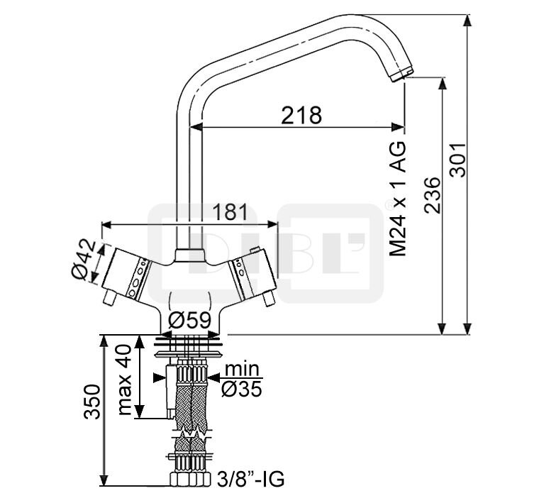 DIBL'med Thermostat-Spültischbatterie mit hohem, schwenkbarem Profilauslauf, mit Vorrichtung zur manuellen, thermischen Desinfektion