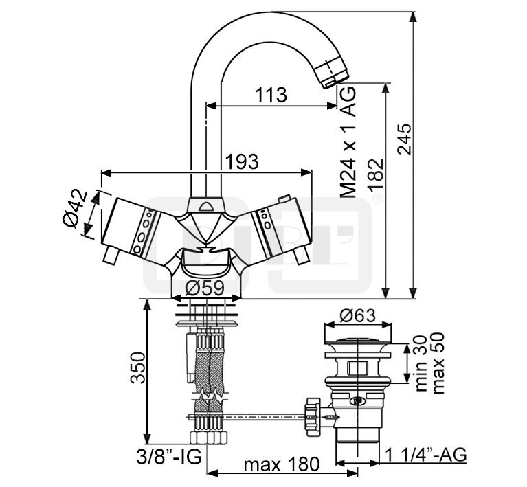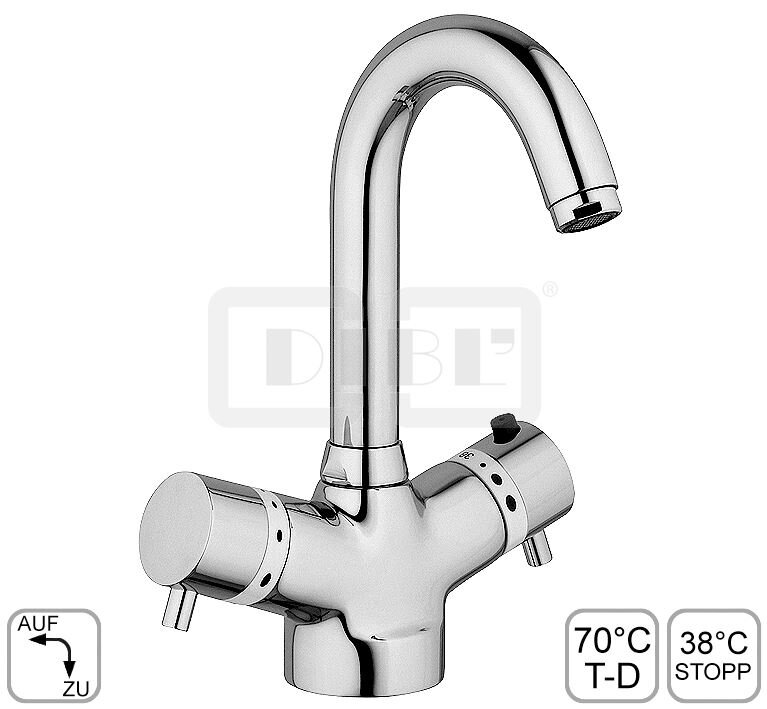 DIBL'med Thermostat-Waschtischbatterie mit hohem, schwenkbarem Profilauslauf, mit Ablaufgarnitur 1¼", mit Vorrichtung zur manuellen, thermischen Desinfektion
