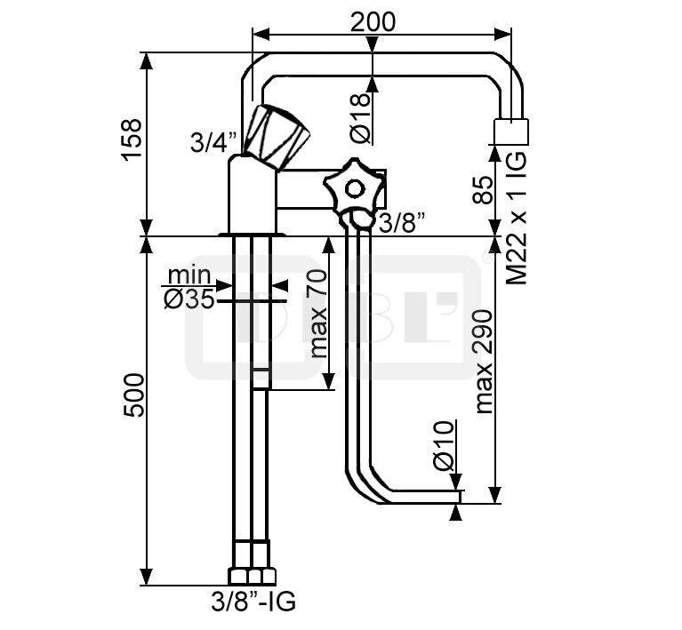 DIBL'med Zweigriff-Spülthekenbatterie für zwei Spülbecken, ohne Ablaufzubehör