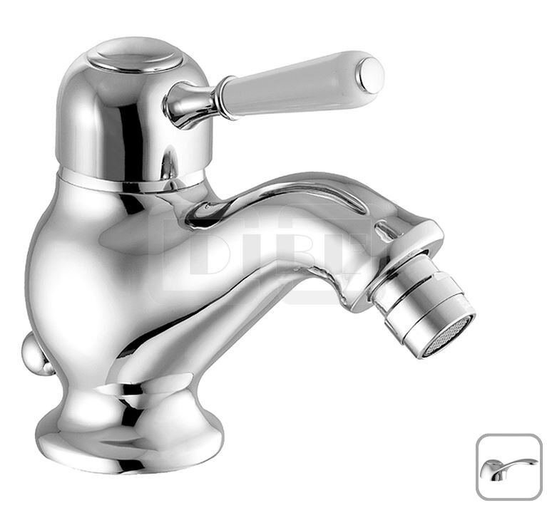 DIBL'porcelain Einhebel-Bidetbatterie, mit Zugstangenbohrung und Ablaufgarnitur 1¼", mit Messingguss-Griffhebel mit Griffstück in Porzellan-Optik