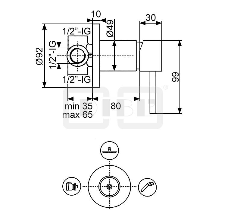 DIBL'pur Mehr-Wege-Umschaltventil zur Unterputzmontage, passend für bis zu drei Abgangsanschlüsse (Rohbauset und Fertigset)