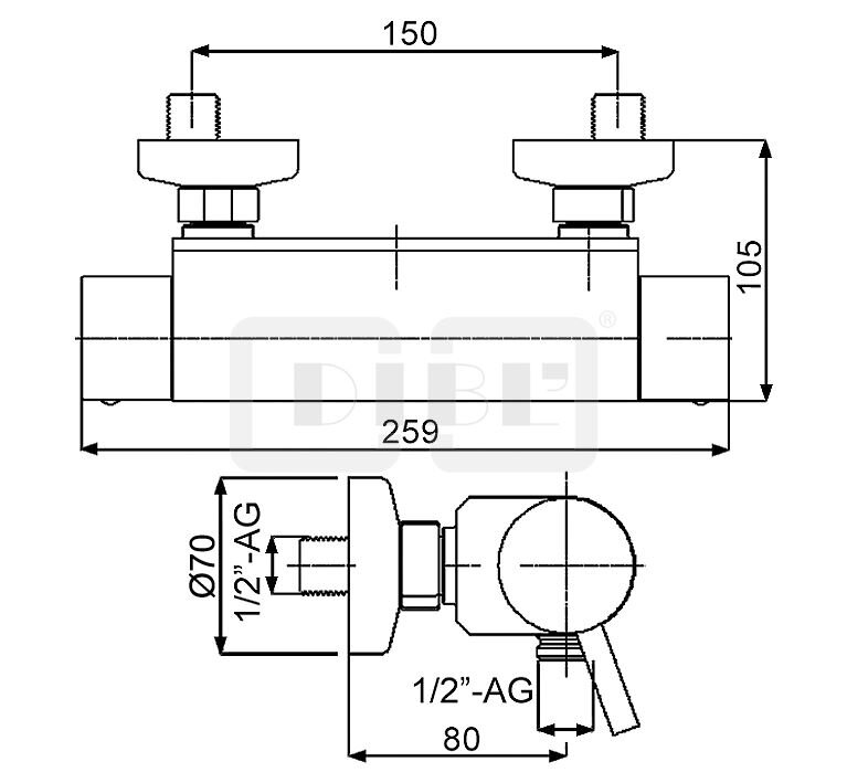 DIBL'pur Thermostat-Brausebatterie zur Aufputzmontage, ohne Brausezubehör, Brauseabgang unten ½" Außengewinde