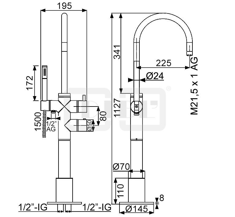 DIBL'pur Thermostat-Wannenbatterie zur freistehenden Bodenmontage im Raum, mit Stabhandbrause