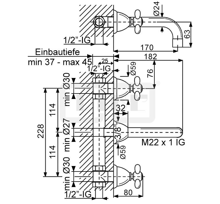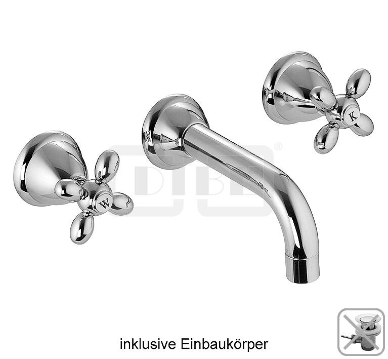 DIBL'stil Zweigriff-Waschtisch-Wandbatterie mit starrem Gussauslauf 182 mm, ohne Zugstangenbohrung, ohne Ablaufzubehör