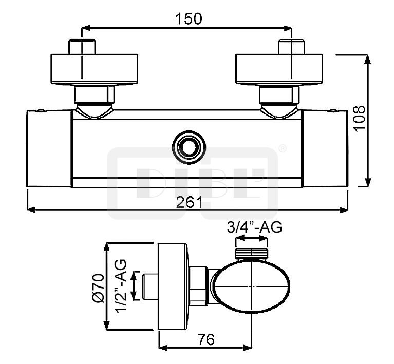 DIBL'swing Thermostat-Brausebatterie zur Aufputzmontage, ohne Brausezubehör, Brauseabgang oben ¾" Außengewinde