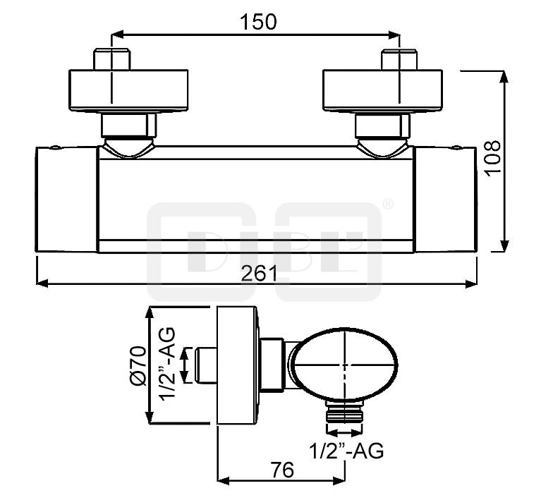 DIBL'swing Thermostat-Brausebatterie zur Aufputzmontage, ohne Brausezubehör, Brauseabgang unten ½" Außengewinde