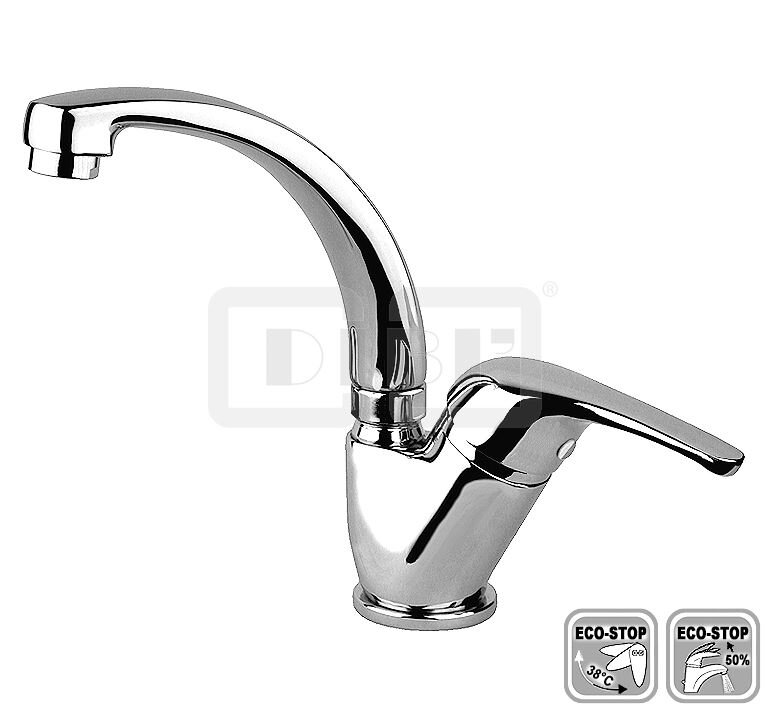 DIBL'tech Einhebel-Waschtischbatterie mit hohem, schwenkbarem Profilauslauf, mit Zugstangenbohrung und Ablaufgarnitur 1¼", ECO-Stop-Funktion