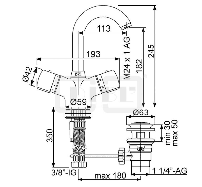 DIBL'therm eco Thermostat-Waschtischbatterie mit hohem, schwenkbarem Profilauslauf, mit Ablaufgarnitur 1¼"