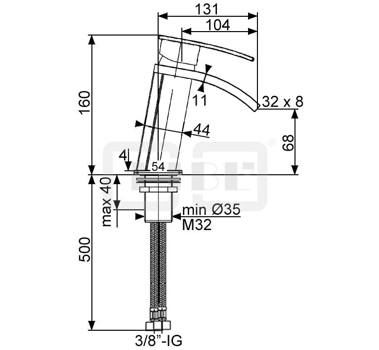 DIBL'yola Einhebel-Waschtischbatterie, geschlossener Armaturenkörper ohne Zugstangenbohrung, ohne Ablaufzubehör