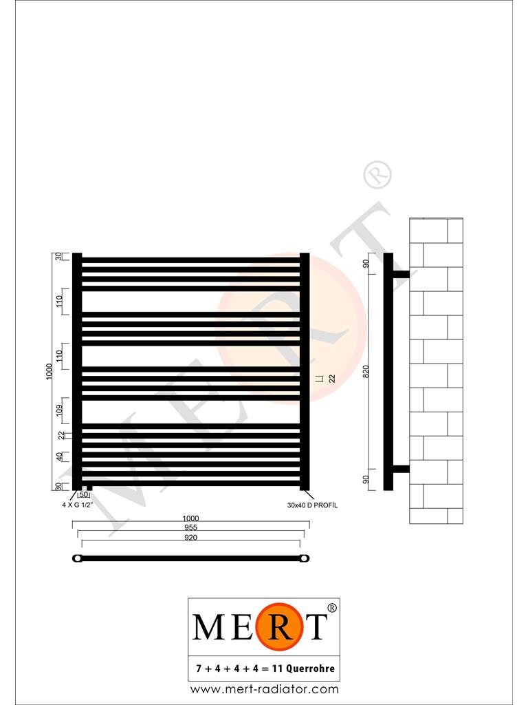 MERT Austausch Badheizkörper weiß gerade, 1000*1000 mm, versetzter Mittelanschluss links oder rechts unten