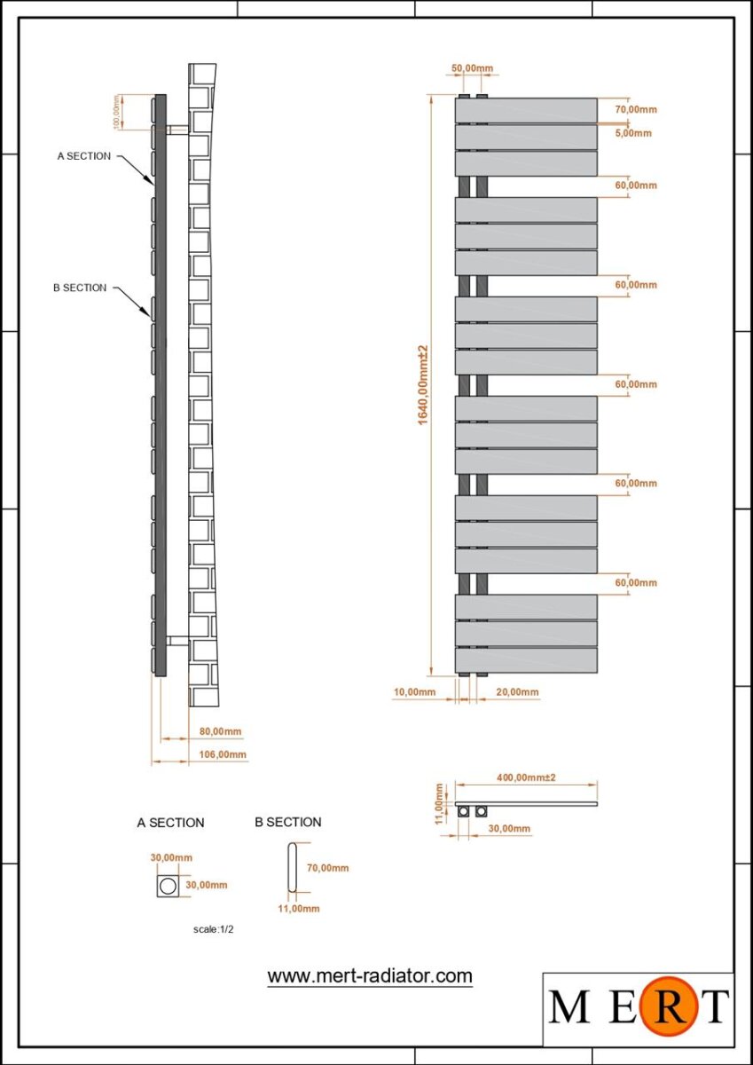 MERT Design Badheizkörper ASK, Verkehrsweiss RAL 9016 matt Struktur, 400*1640 mm