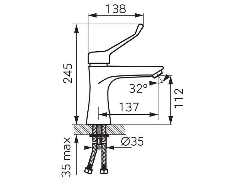 Medizinische Klinikarmatur für Waschtische Algeo Square Medico